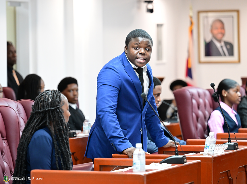 Students from across the Virgin Islands discussed the importance of developing the territory’s “blue economy” during a mock House of Assembly sitting last Thursday attended by visiting British House of Commons Speaker Sir Lindsay Hoyle.